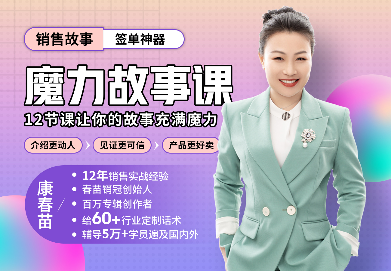 音视频课:销售魔力故事课(保底12节,赠课更新无上限)