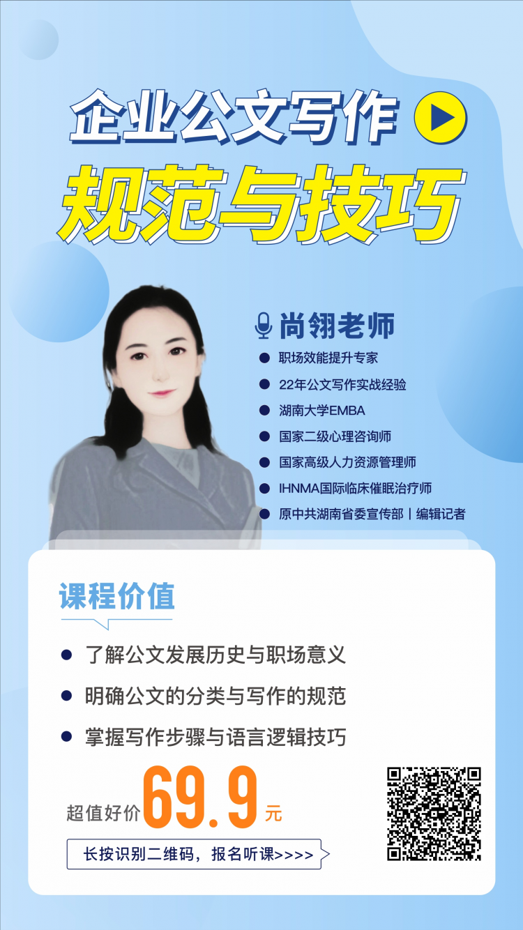 本课程将从基础篇、规范篇、技巧篇、实操篇、技法篇帮助参训学员明确公文写作规范、掌握公文写作要点,提高公文写作能力,从而全面提升企业的整体管理形象与管理水平。
